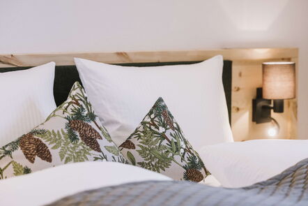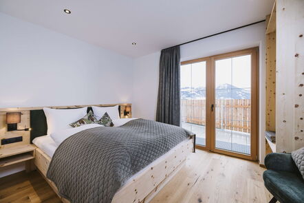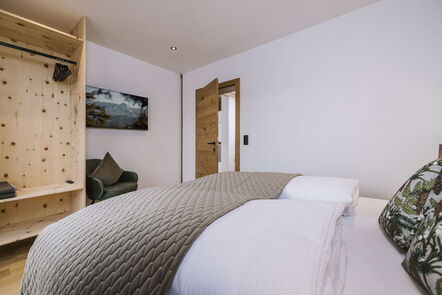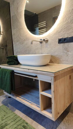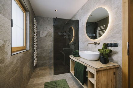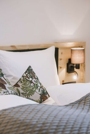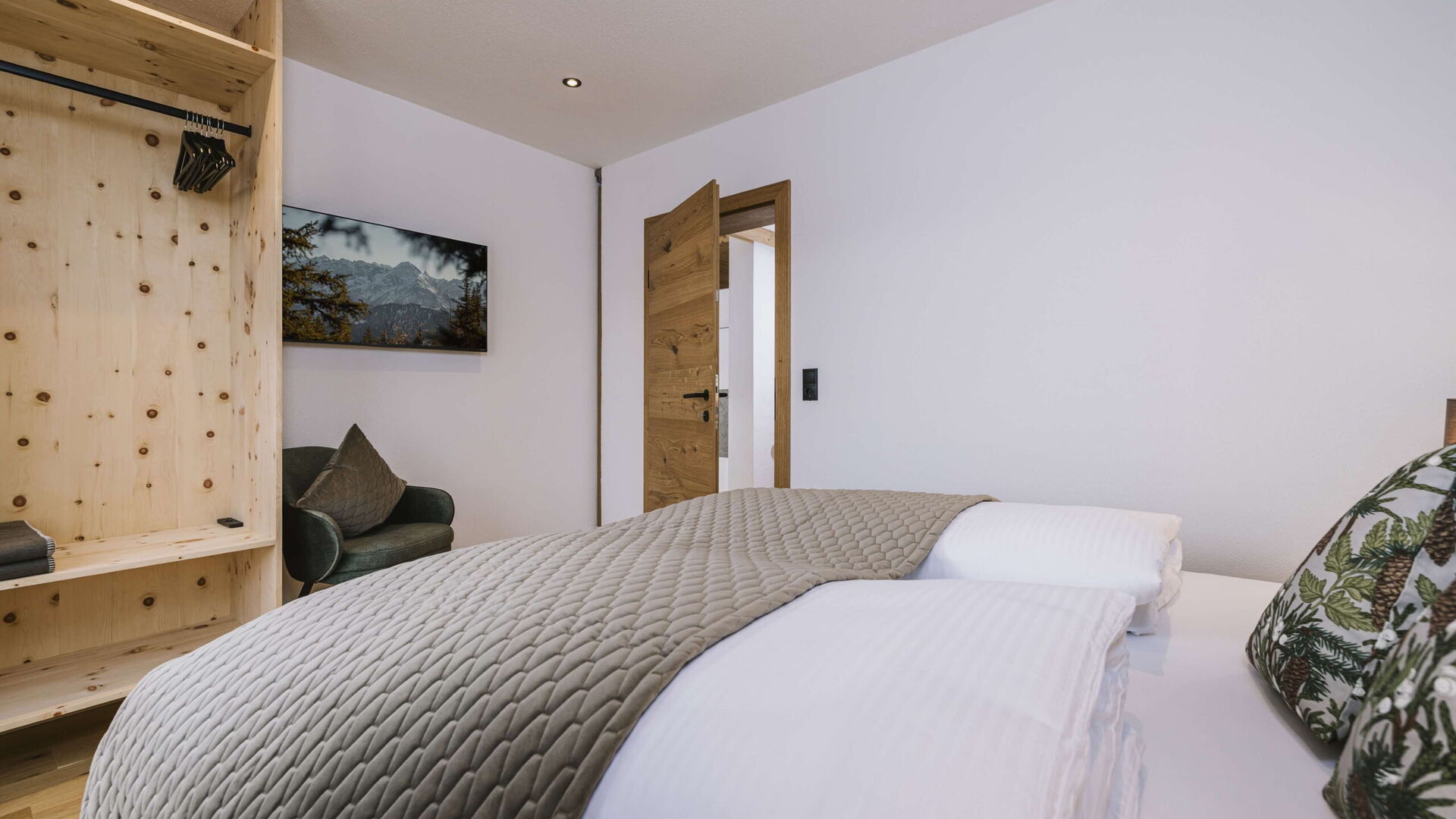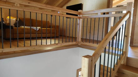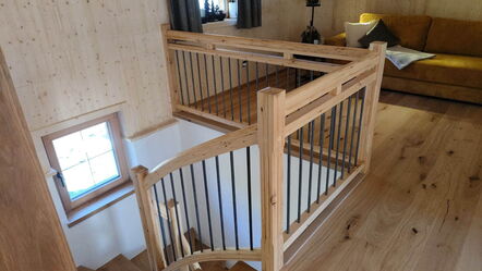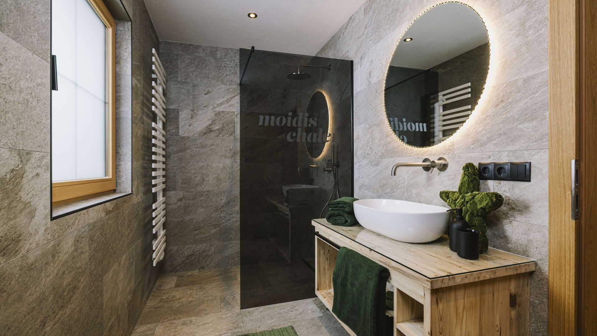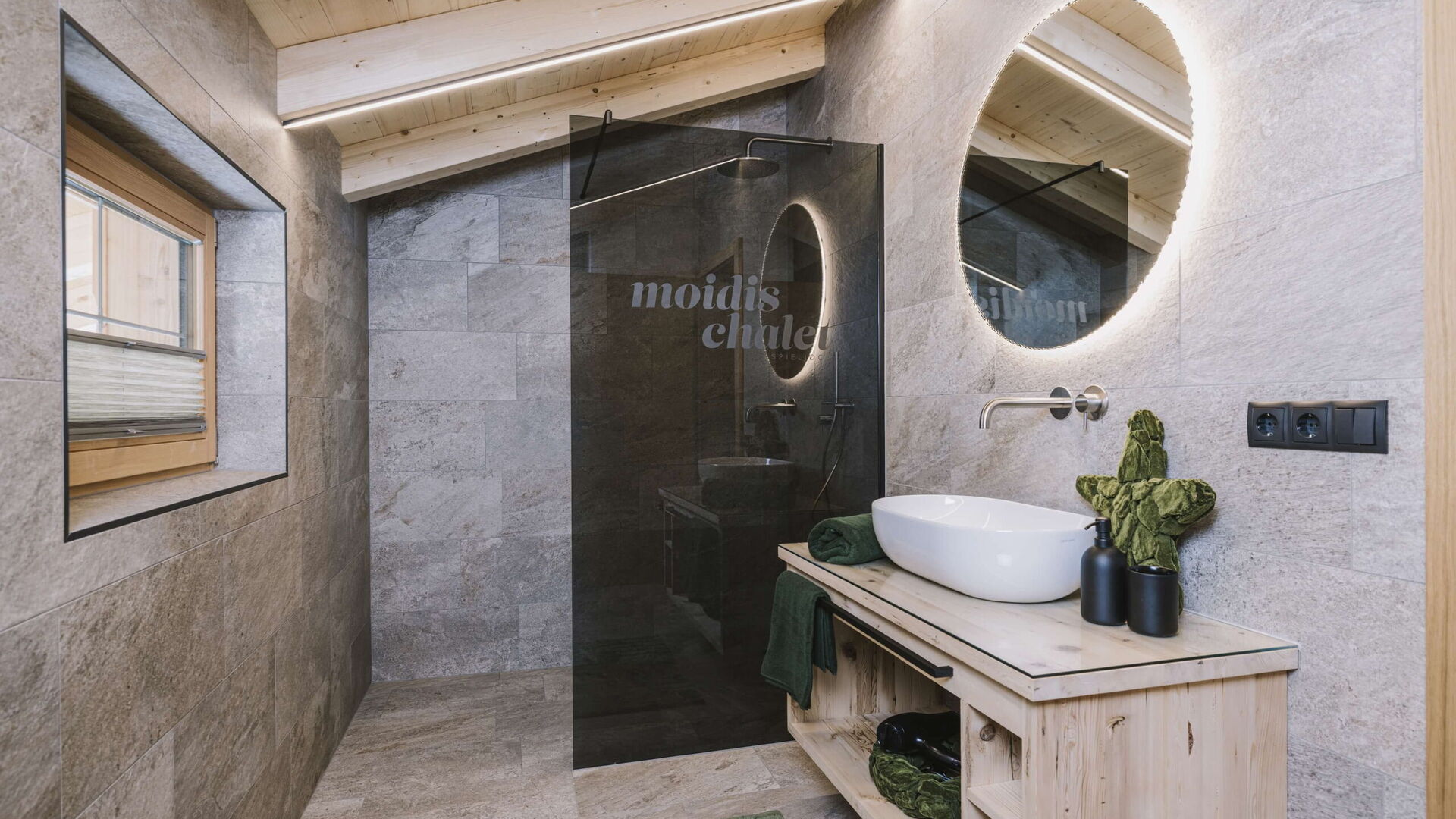 Moderner Chalet-Innenausbau aus hellem Holz: naturnah und elegant – Holz, Stein und Licht wirken harmonisch und beruhigend zusammen. Hochwertig, ruhig und zeitlos.