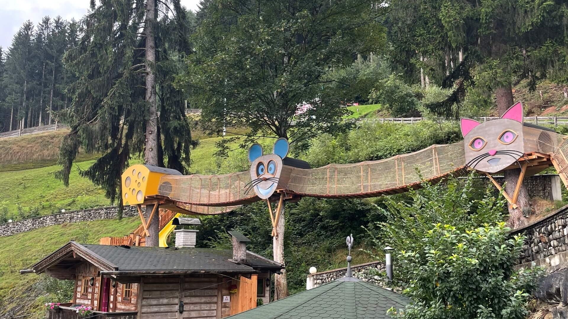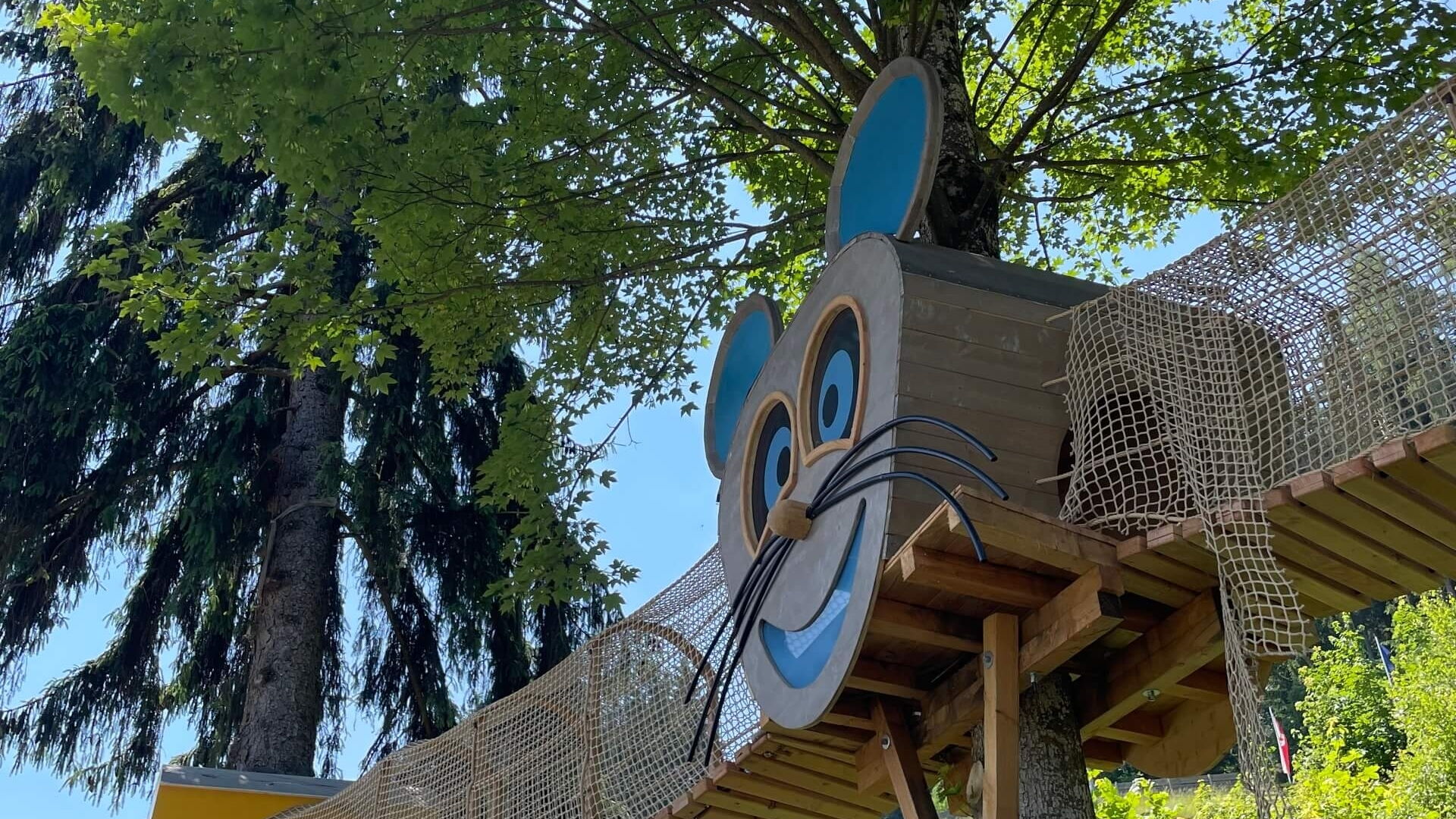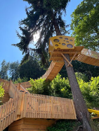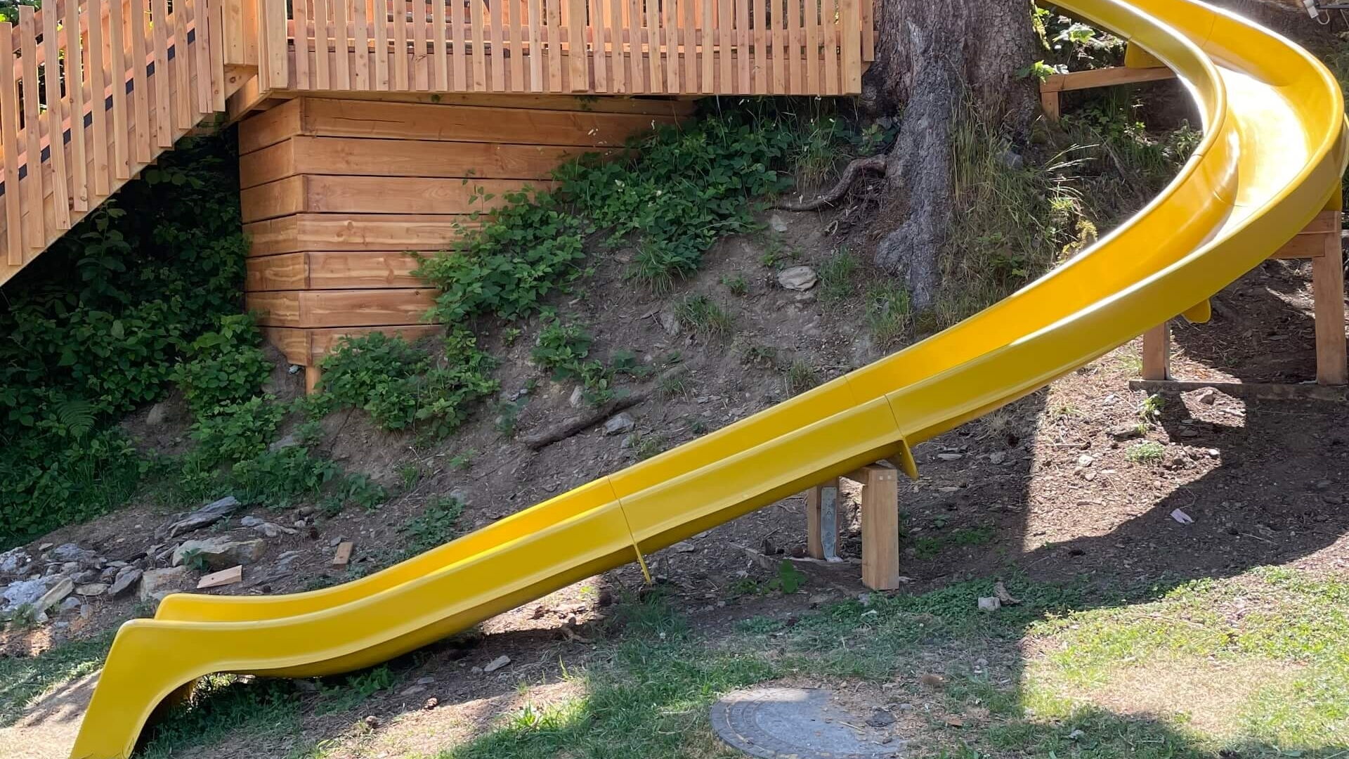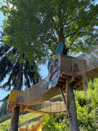 Vom spritzigen Wasserspiellauf über den liebevoll gestalteten Kleinkinderspielplatz bis hin zum 8‑Meter‑Kletterturm und der aufregenden Seilrutsche: Hier kann gespielt, getobt, geklettert und die Abenteuerlust voll ausgelebt werden.
