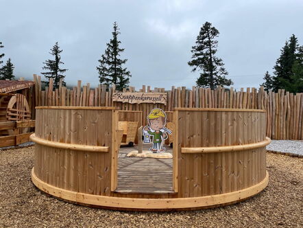 Am Spieljoch Erlebnisspielplatz warten der geheimnisvolle Stollen mit Labyrinth, der große Kristallexpress und der actionreiche Knappenparcours darauf, erkundet zu werden. Kinder können im Spielsee planschen, Schätze suchen oder sich am Pochwerk ausprobieren – Spaß und Fantasie sind hier garantiert.